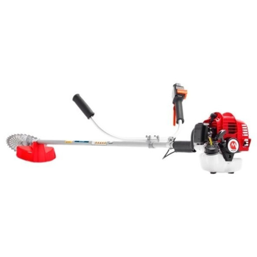 тип триммера: переносной двухтактный двигатель емкость топливного бака 0.5 л ширина скашивания 23 см режущий элемент триммера: нож конструкция штанги: прямая форма рукояти: Т-образная (велосипедная) плечевой ремень наличие колес: нет вес 4.6 кг