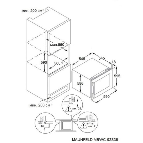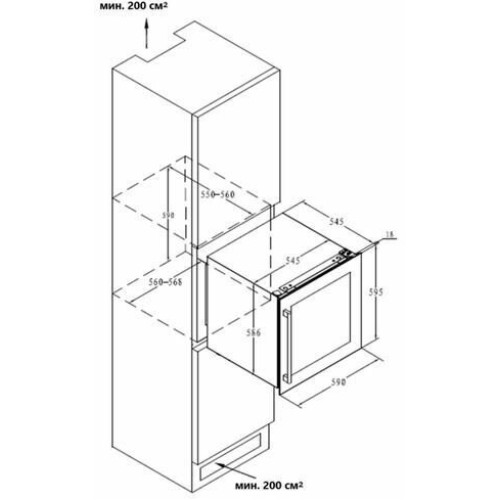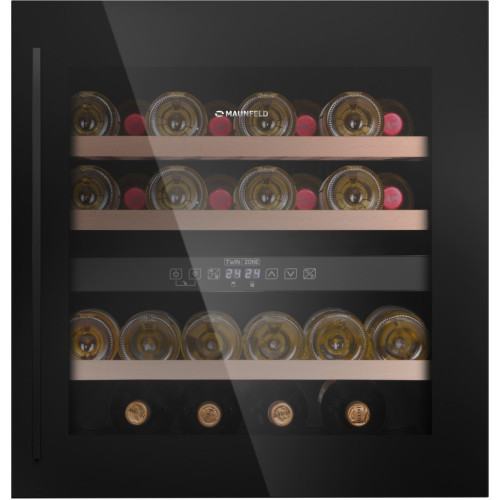 встраиваемый винный шкаф, 85л, 2-камерный, 59x60.6x59.5см, чёрный