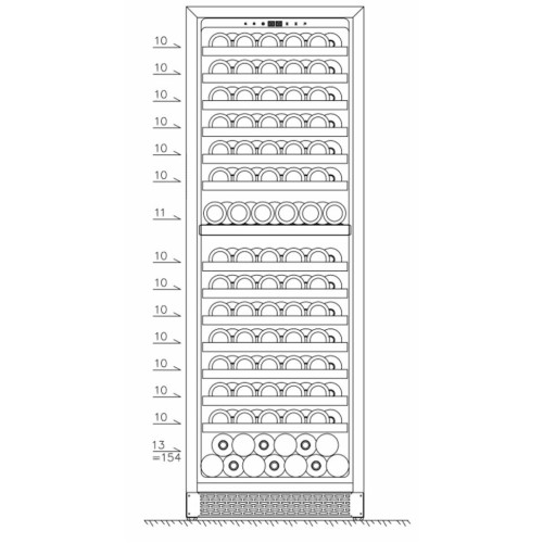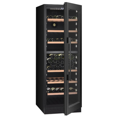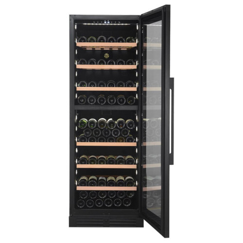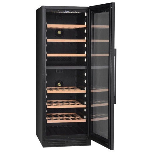 Винный холодильник MC Wine W180DB имеет две температурные зоны, в которых одновременно можно хранить разные сорта алкоголя и выставлять разные сочетания настроек. Он устанавливается отдельно, что удобно, если у вас есть специальное помещение — кладовая, погреб и т.д. Количество бутылок, которое можно разместить с учетом полной комплектации и из расчета объема бутылки 0,75 л, — 154 шт. Одна камера в технике такого типа встречается чаще всего, потому что в ней просто расположить все функциональные детали, и в итоге прибор действительно похож на обычный шкаф. Охлажденный воздух поступает внутрь благодаря компрессору. Общий диапазон температур, которые можно установить: 5-20 градусов. Средняя влажность воздуха (в процентах), которая поддерживается, чтобы пробки в бутылках не пересыхали: 60-80. Стеклянная дверь — дополнительный изящный штрих к общему дизайну модели. Специальное покрытие защищает вино от влияния ультрафиолетовых лучей, которые проникают, если шкаф находится в солнечной комнате. Хранение становится еще безопаснее и герметичнее благодаря нескольким слоям стекол. Цвет корпуса — черный. Дверь можно перевесить на другую сторону, поэтому вариантов размещения его в доме становится больше. Электронное управление помогает быстро разобраться в том, как функционирует эта модель, и легко настроить все необходимые параметры. На дисплее отображаются данные, которые собирают датчики в камере. Лампочки, расположенные внутри, хорошо подсвечивают бутылки. Всего полок, на которых можно разместить коллекцию, в шкафу 13 шт. Пространство тщательно вентилируется, чтобы воздух не застаивался, не попадали посторонние запахи. Специальная защита от вибраций не только делает работу тише, но и дополнительно защищает вино от вредных колебаний. Сигнал открытой двери предотвращает нарушение хранения.