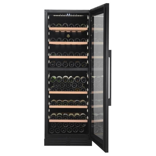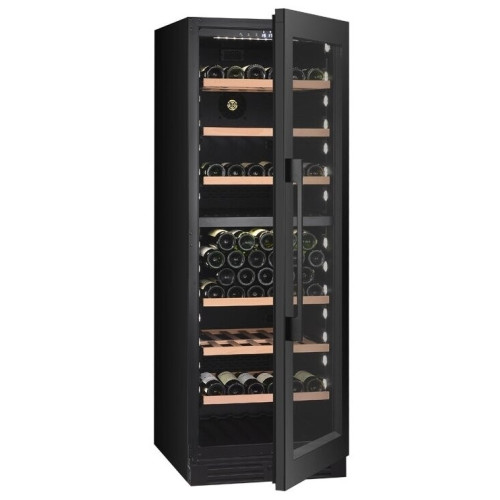 тип винного шкафа: двухтемпературный, высота: 172 см, ширина: 59.50 см, глубина: 71 см, емкость винного шкафа, бут.: 154, количество камер: 1, класс энергопотребления: A+, тип компрессора: инверторный, цвет корпуса: чёрный