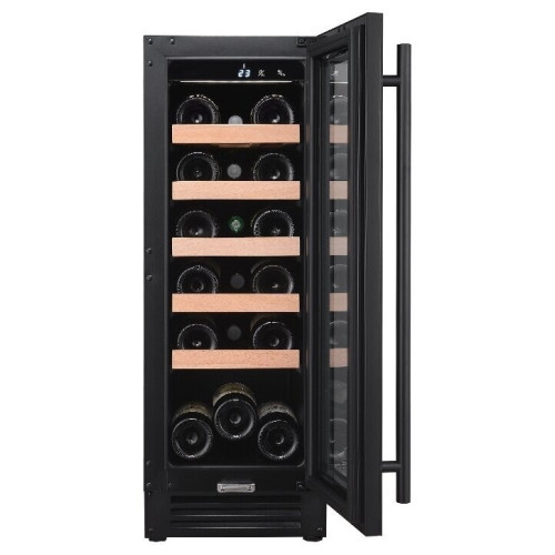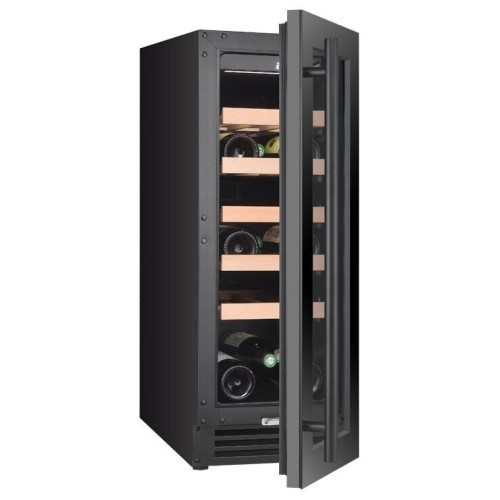 тип винного шкафа: монотемпературный, высота: 82 см, ширина: 29.50 см, глубина: 57 см, емкость винного шкафа, бут.: 20, количество камер: 1, класс энергопотребления: A+, тип компрессора: инверторный, цвет корпуса: чёрный