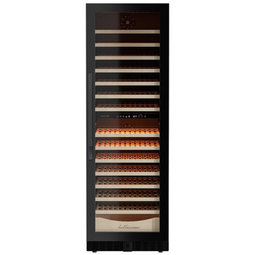 Винный шкаф предназначен для профессионального и длительного хранения различных сортов вин (до 174 бутылок типа Бордо). Он так же оснащен дверью с защитой от ультрафиолетовых лучей и поддерживает влажность в диапазоне 60-80%, как в настоящем винном погребе. Стильный шкаф MV163PRO-KBT2 сочетает в себе неподвластное времени очарование, а так же качество натуральных материалов и высоких технологий. MV163PRO-KBT2 может устанавливаться как отдельно, так и встраиваться в нишу. За счёт того, что верхняя петля двери не выступает за пределы корпуса и шкаф оснащён встроенной системой вентиляции - эта модель устанавливается в нишу с минимальными зазорами. Внутреннее пространство винного шкафа разделено на две температурные зоны. Вы сможете настроить их так, что бы хранить все виды вина при идеальной температуре или установить разные значения, что бы напитки всегда были готовы к подаче. Так же в каждой зоне есть полка с увеличенным пространством. На таких полках Вы сможете разместить не только стандартные бутылки Бордо, но и Магнум. А если нужно разместить что-то побольше - то в этом случае можно вынуть одну или несколько полок. Внизу есть выдвижной ящик - в нем Вы можете хранить вино в бутылках или винные атрибуты (штопор, бокалы, аэраторы, декантеры, каплеуловители, термометры и т.д.). Так же, из важных функций в этой модели есть сигнализация открытой двери и отклонения температуры, автоматическая разморозка и зимний режим, который подогреет внутреннее пространство, если температура в помещении опустилась ниже заданной. Управление сенсорное с функцией блокировки. Есть режим «Эко-демо» и память настроек. Преимущества винного шкафа Meyvel MV163PRO-KBT2: * Идеально подходит для дома и ресторана; * Можно установить в нишу или отдельно; * Встроенная система вентиляции; * Перенавешиваемая дверь; * Возможность устанавливать два шкафа Side by Side; * Ручка и замок в цвет корпуса; * Две температурные зоны для хранения вин и подготовки их к подаче; * Полки из массива бука отлично гасят вибрацию; * Полка с увеличенным пространством (в каждой зоне) для нестандартных бутылок; * Панорамное освещение для максимальной демонстрации винной коллекции; * 3 цвета освещения на выбор (белый /синий / янтарный); * 3 стекла для максимальной защиты от ультрафиолета; * Угольный фильтр для устранения посторонних запахов; * Зимний режим для сохранения заданного температурного режима в неотапливаемых помещениях; * Сигнализация отклонения температуры; * Сигнализация открытой двери; * Память настроек (при отключении питания все настройки сохранятся); * Автоматическая разморозка; * Оснащён одним из самых надёжных компрессоров с низким уровнем шума.