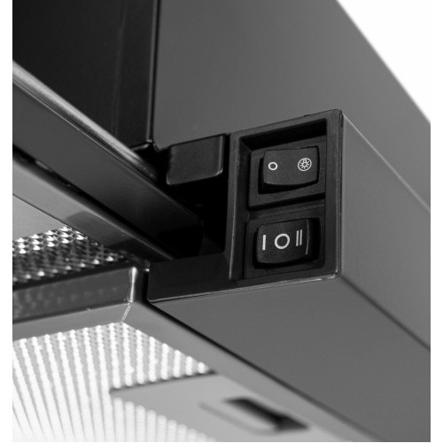 Вытяжка премиального уровня MBKHSG 601 BL со стильным дизайном идеально впишется в интерьер любой современной кухни и станет отличным функциональным дополнением эксклюзивного дизайнерского решения. В условиях, когда в помещении отсутствуют специальные вентиляционные отверстия для подключения устройства, вытяжка может функционировать в режиме рециркуляции с угольными фильтрами, устраняя неприятные запахи в помещении. Подсветка реализована посредством двух LED ламп мощностью в 1 Вт.