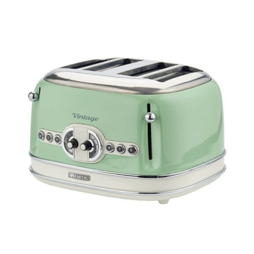 Тостер Ariete Vintage 156/04 Green имеет несколько режимов работы. Управление устройством осуществляется с помощью специальных механических переключателей. Благодаря технологии автоцентрирования тосты не соприкасаются с нагревательным элементом. Это исключает риск пригорания хлеба и отвечает за равномерное обжаривание. Для размораживания выпечки предусмотрен соответствующий режим работы. Тостер Ariete Vintage 156/04 Green обладает прорезиненными ножками, что препятствует скольжению по поверхности стола. Корпус является термоизолированным, что исключает риск получения ожога в случае прикосновения к устройству. Крошки попадают в специальный съемный поддон, что способствует поддержанию чистоты на кухне. Модель изготавливается из высококачественного металла, благодаря которому устойчива к механическим повреждениям.