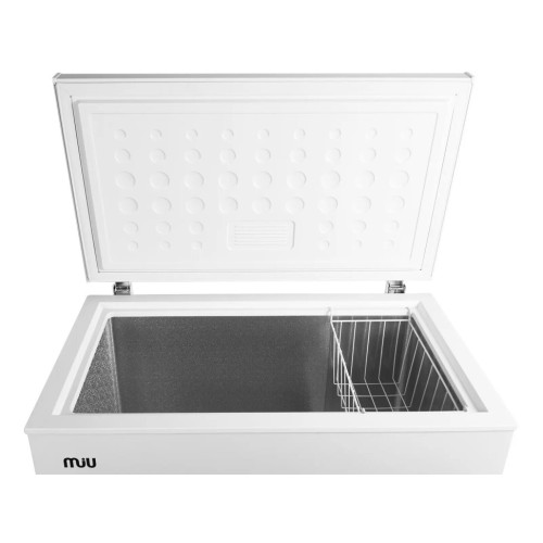 Морозильный ларь MIU MR-350 оснащен вместительной камерой с полезным объемом 330 л, внутри которой расположена 1 подвесная корзина. Управлением функционалом осуществляется через поворотные элементы. Мощность замораживания составляет 14 л/сутки. Скребок из комплекта поможет удалить наледь со стенок.