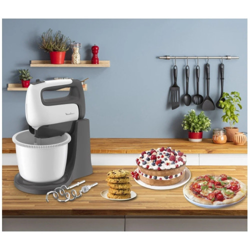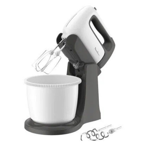 Миксер Moulinex HM 464110 Ничто не сравнится с ароматной домашней выпечкой. Moulinex представляетвашего идеального помощника, с которым каждая выпечка будетпревосходной. Ручной миксер Prepmix+ оснащен мотором мощностью 500 Вт иимеет в комплекте две пары насадок из нержавеющей стали – венчики длявзбивания и крюки для замешивания плотного теста. Готовьте любые блюда воптимальном режиме – миксер предлагает 5 скоростей работы и режимTurbo. Благодаря эргономичной ручке с текстурированным покрытием миксерудобно держать даже мокрыми руками, а устойчивое основание позволяетпоставить его на стол и сохранить рабочую поверхность чистой. Послеиспользования съемные аксессуары можно мыть в посудомоечной машине.