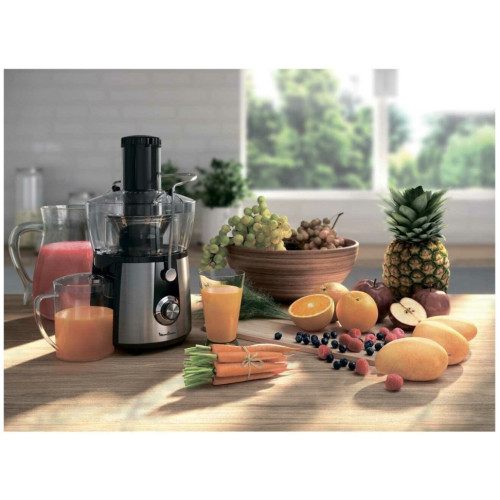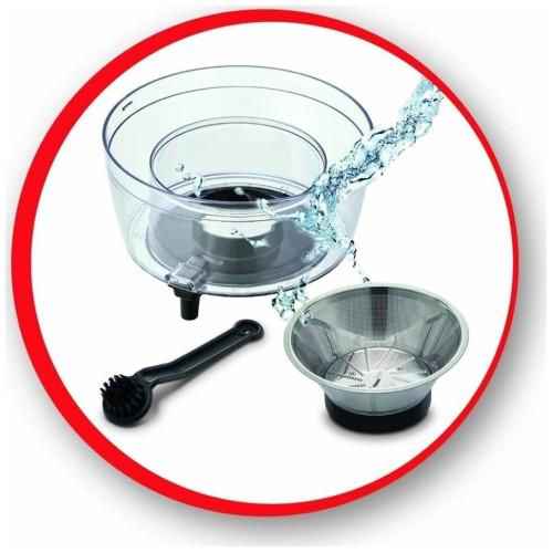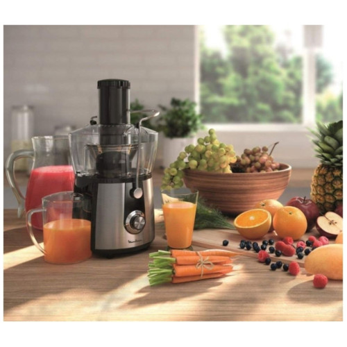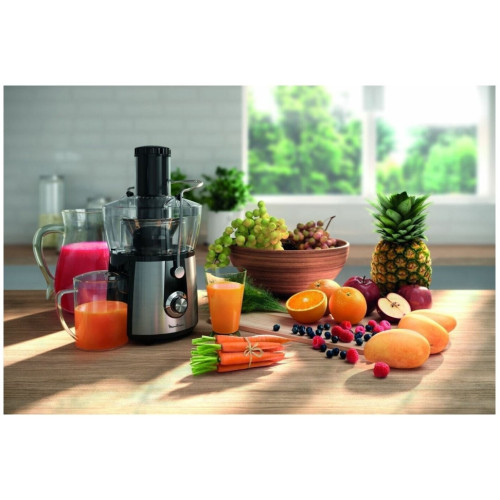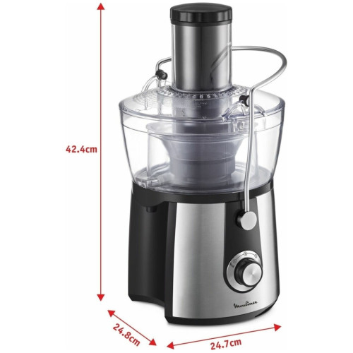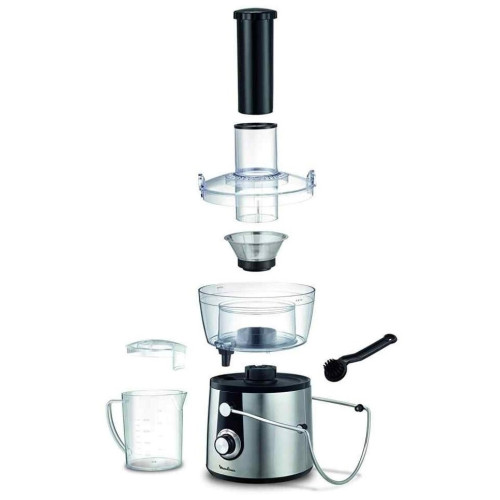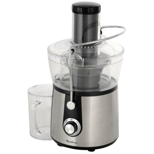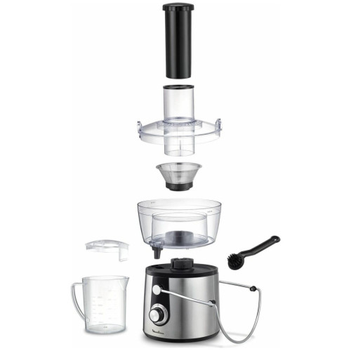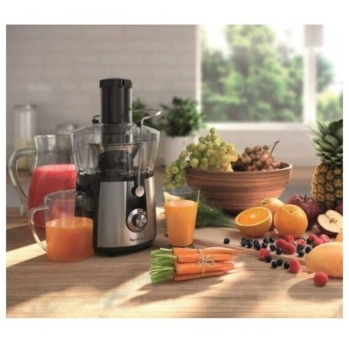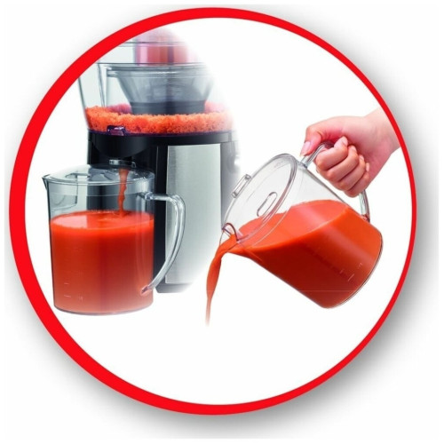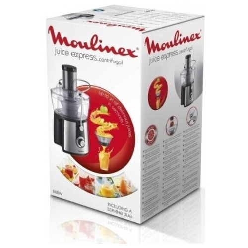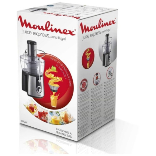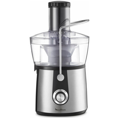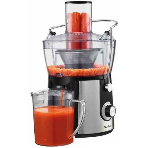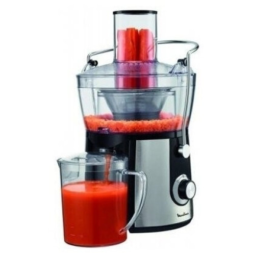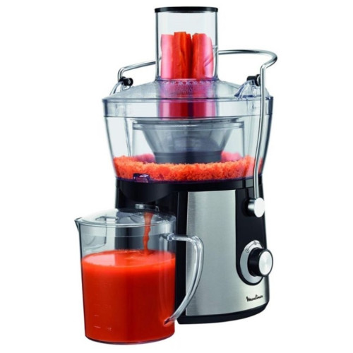 Соковыжималка Moulinex JU 550 D10 Особенности: Переключатель скоростей Первая скорость: для мягких фруктов, овощей и зелени Вторая скорость: для жестких фруктов и овощей Съемный контейнер для сока Встроенный контейнер для жмыха Фильтр и лезвия из нержавеющей стали Дополнительная информация Автоматический выброс мякоти Подача сока сразу в стакан Большая металлическая ручка для предотвращения неправильного использования Съемные детали можно мыть в посудомоечной машине Толкатель Прорезиненные ножки