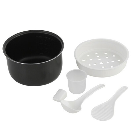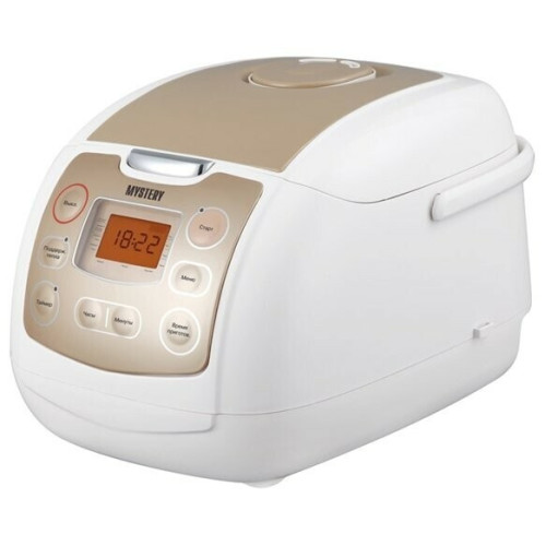Мультиварка Mystery MCM-1019 имеет приятный дизайн - корпус выполнен в белом цвете, на котором ярким акцентом выделяется вставка приятного оттенка, она же панель управления с которой очень удобно руководить программами, и наблюдать за временем приготовления, отображающиеся на цифровом дисплее с оранжевой подсветкой. Мультиварка Mystery MCM-1019 укомплектована 5-ти литровой чашей с антипригарным покрытием, предназначенной для приготовления пищи, а также паровой емкостью для приготовления на пару, мерной ложкой и стаканом, лопаткой для перемешивания.