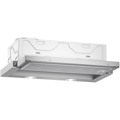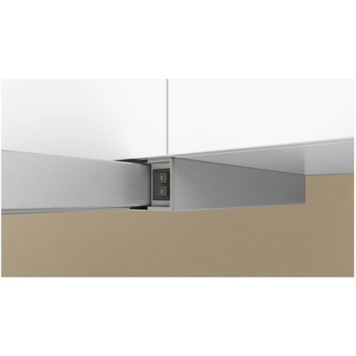 Встраиваемая вытяжка с выдвижным экраном: поклонники обтекаемых кухонь любят нашу телескопическую вытяжку, потому что она незаметна встроена в нишу верхнего шкафа. Встроенный механизм питания – телескопическая вытяжка автоматически запускается и останавливается, когда вы выдвигаете его и возвращаете обратно.