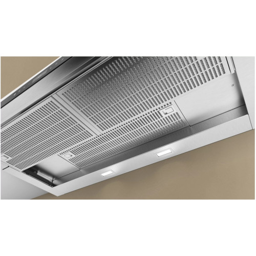 Встраиваемая вытяжка с выдвижным экраном: поклонники обтекаемых кухонь любят нашу телескопическую вытяжку, потому что она незаметно встроена в нишу верхнего шкафа. Создайте атмосферу на кухне при помощи плавно регулируемого света от вытяжки. Пусть ваши глаза наслаждаются не меньше, чем остальные органы чувств. Высокоэффективный двигатель с инновационной бесщеточной технологией обеспечивает особенно тихую и энергоэффективную работу. Шум от вытяжки не помешает творческому процессу приготовления ваших любимых блюд.