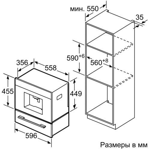 Встраиваемая кофемашина с функцией OneTouch поможет приготовить разнообразные кофейные напитки нажатием одной клавиши. Проточный нагревательный элемент с сенсорами температуры SensoFlow — интеллектуальная система, гарантирующая максимальный аромат кофе благодаря поддержанию оптимальной температуры заваривания. Кофемашина предусматривает возможность использования фильтра для воды, который продлевает срок службы прибора. Кофемолка с жерновами из высококачественной керамики SilentCeramDrive автоматически адаптируется под разные сорта кофейных зёрен. Отсек для кофейных зёрен имеет изоляцию для снижения шума. Ёмкость для воды также дополнена алюминиевой изоляцией. Степень помола регулируется, а для молотого кофе предусмотрен специальный отсек. К контейнерам для воды, молока и кофе в зёрнах обеспечен лёгкий доступ, при этом они скрыты за дверцей, чтобы кухня всегда выглядела чистой и опрятной. Кофемашина оснащена TFT-дисплеем с интерактивным меню. Функция MyCoffee делает доступным программирование персональных рецептов и предусматривает 8 профилей под индивидуальным именем. Благодаря быстрому разогреву системы вы получите первую чашку кофе за рекордно короткое время. С OneTouch DoubleCup возможно одновременное приготовление напитков с молоком сразу для 2 чашек. Высота капучинатора регулируется до 15 см, поэтому вы можете использовать высокие стаканы для латте макиато. Капучинатор легко разбирается, все части можно мыть в посудомоечной машине. В кофемашине реализовано альтернативное решение для подачи молока: вы можете использовать ёмкость для молока, любой другой контейнер или пакет с молоком. Прибор заблаговременно предупредит, если контейнер для воды или отсек для зёрен почти пуст. Предусмотрена блокировка от детей. Single Portion Cleaning обеспечивает автоматическое удаление остатков воды из подводящих трубок после каждого заваривания, а AutoMilk Clean автоматически чистит молочную систему паром. При выключении и включении кофемашины срабатывает программа автоматического ополаскивания. Кроме того, кофемашина использует полностью автоматическую программу удаления накипи и очистки системы (комбинированная программа calc`n`clean доступна). Прибор предоставляет большой выбор напитков: капучино, эспрессо макиато, эспрессо, молочная пена, тёплое молоко, горячая вода, кофе, латте макиато, кофе с молоком, Ristretto, кофе с молоком по персональному рецепту. Принадлежности в комплекте: мерная ложка, тест-полоска для определения жёсткости воды, соединительная трубка для капучинатора, изолированная ёмкость для молока, шурупы.