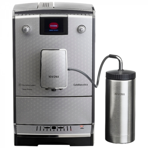 Nivona CafeRomatica 768 Тип устройства кофемашина Тип автоматическая Технические характеристики Количество групп 1 Используемый кофе молотый / зерновой Мощность 1455 Вт Объем 2.2 л Максимальное давление 15 бар Манометр нет Настройки контроль крепости кофе, регулировка температуры кофе, регулировка порции горячей воды Автоматическая декальцинация есть Регулировка жесткости воды есть Возможность приготовления капучино есть, автоматическое приготовление Тип напитка капучино, эспрессо Таймер нет Автоотключение есть Конструкция Встроенная кофемолка есть, регулировка степени помола, емкость контейнера для зерен 250 г Противокапельная система нет Одновременное приготовление двух чашек есть Подсветка есть Дисплей есть, с подсветкой Подача горячей воды есть Подогрев чашек есть Отсек для хранения шнура есть Контейнер для отходов есть Съемный лоток для сбора капель есть Особенности Материал корпуса металл Индикация включения есть Размеры (Ш*В*Г) 24x34x46 см Вес 11 кг Дополнительная информация режим экономии энергии; регулируемый по высоте дозатор кофе; энергосберегающий режим; автоматические программы промывки системы; мерная ложка; 3 уровня температуры; 5 режимов крепости; охладитель для молока; контейнер для отходов на 12 порций; регулировка сопла по высоте Бренд: Nivona Модель: CafeRomatica 768