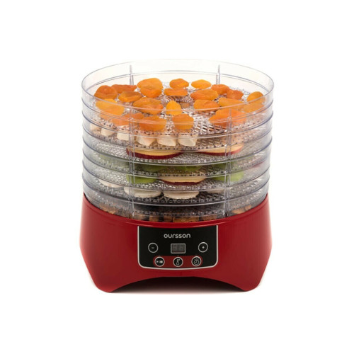 Сушилка для овощей и фруктов Oursson DH3501D/RD – удобный бытовой прибор с электронным управлением, позволяющий упростить и ускорить процесс заготовки фруктов и овощей, грибов и ягод. Устройство представлено в ярко-красном дизайне и оснащено восемью секциями. Общая нагрузка системы составляет 8 кг при вместимости каждой секции по 1 кг продуктов. Прибор дополнен удобным дисплеем и таймером обратного отсчета. Дегидратор Oursson DH3501D/RD позволяет даже вялить мясо или рыбу. Оборудование оснащено конвекционным нагревателем, действующим с мощностью 400 Вт и обеспечивающим нагрев в пределах 38-68 градусов. Температуру можно регулировать. Устройство оснащено пластиковым корпусом и вертикальной подачей нагретого воздуха для оперативного проникновения во все секции прибора. Корпус с полупрозрачными стенками позволяет визуально контролировать процесс сушки.
