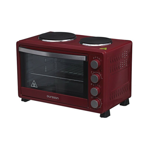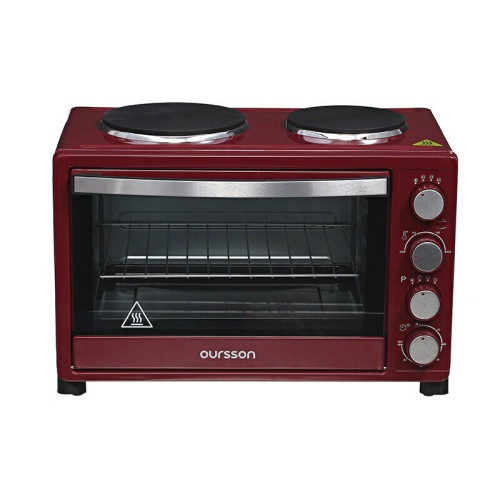 Электрическая мини-печь с двумя конфорками OURSSON MO3010 объемом 30 литров оснащена всеми необходимыми функциями и позволяет не только готовить блюда внутри печи, но и использовать конфорки, которые можно включать как совместно, так и раздельно. Мощность большой конфорки составляет 1000 Вт, маленькой – 600 Вт. Печь имеет 3 режима приготовления и регулировку температуры от 100 до 230 градусов. Таймер на 60 минут с автоотключением позволяет задать время приготовления, а звуковой сигнал известит о завершении приготовления. В комплект входят: решетка, противень и ручка для решетки.