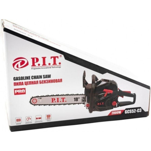 Бензопила P.I.T. GCS52-C3 оснащена мощным двигателем, подходит для продолжительной интенсивной работы. Преимущества PIT GCS52-C3 * Удобные рукоятки эргономичной формы - надежный хват; * Низкий и ровный уровень шума; * Клавиша включения самоблокирующегося типа - дополнительная безопасность; * Система противотолчкового торможения - спокойная и безопасная работа; * Автоматическая система смазки - простота обслуживания; * Карбюратор высокого качества - долгий срок службы инструмента; * Стартер с системой легкого запуска; * Цепь и шина в комплекте; * Пластиковый кожух - защита пильной гарнитуры во время транспортировки и хранении.