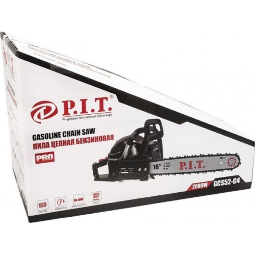 Бензопила P.I.T. GCS52-C4 оснащена мощным двигателем, подходит для продолжительной интенсивной работы. Преимущества PIT GCS52-C4 * Удобные рукоятки эргономичной формы - надежный хват; * Низкий и ровный уровень шума; * Клавиша включения самоблокирующегося типа - дополнительная безопасность; * Система противотолчкового торможения - спокойная и безопасная работа; * Автоматическая система смазки - простота обслуживания; * Карбюратор высокого качества - долгий срок службы инструмента; * Стартер с системой легкого запуска; * Цепь и шина в комплекте; * Пластиковый кожух - защита пильной гарнитуры во время транспортировки и хранении.