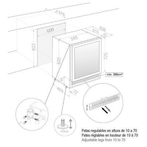 Ширина: 59.5 см; Глубина: 57.5 см; Высота: 82 см; Цвет: черный; Дисплей: есть; Объем: 125 л; Емкость винного шкафа (в бутылках): 45; Кол-во температурных зон: 2