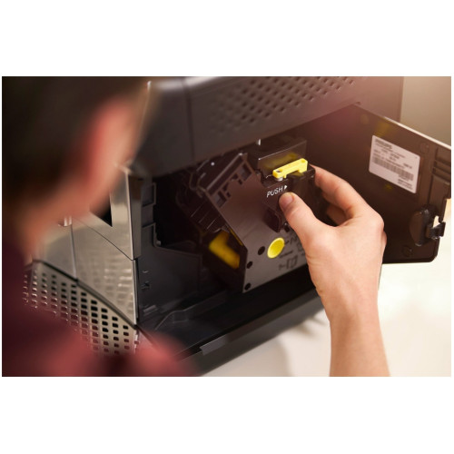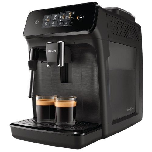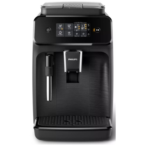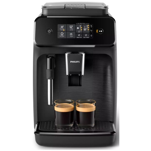 Любой представитель линейки Philips Series 1200 – полностью автоматическая кофемашина. Благодаря ей вы в любой момент получите бодрящий ароматный эспрессо, а специальные насадки позволяют побаловать себя капучино с красивой молочной пенкой. Давление 15 бар обеспечивает отличный вкус и превосходный запах, а 1,8-литровый резервуар освобождает от необходимости часто доливать воду. ПО вашему вкусу Устройство оборудовано встроенной кофемолкой с прочными керамическими жерновами, рассчитанными на длительную эксплуатацию. 12 режимов дают возможность сделать тот порошок, который вам нравится – от сверхмелкого до крупного. просто пользоваться Эта модель оснащена сенсорным дисплеем. Достаточно нескольких лёгких прикосновений, чтобы выбрать тип напитка и задать основные параметры: размер порции воды, температуру и степень крепости.