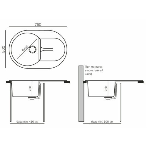 Прямоугольная кухонная мойка Polygran Atol-760 №16 679016. Дополнительные характеристики * Поверхность: матовая. * Материал: искусственный гранит. * Минимальный размер тумбы под мойку: 80 см. * Количество намеченных отверстий для смесителей: 2.