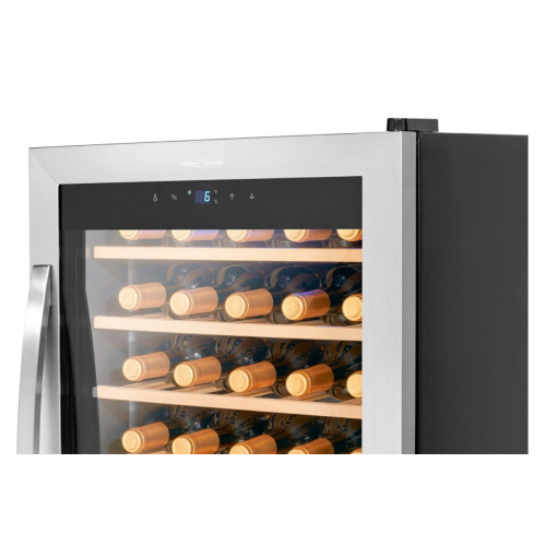 Винный шкаф Profi Cook PC-WK 1235 предназначен для охлаждения и длительного хранения бутилированного и разливного вина в частных домах, квартирах, отелях и офисах. Модель оснащена сенсорной панелью управления cо светодиодным дисплеем с синей подсветкой, 6 съемными полками и регулируемыми ножками. Дверь выполнена из двухслойного стекла с защитой от УФ излучения, полки - из дерева.