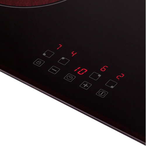Общие данные: Габариты: 5,5х59х52 см Габариты ниши для встраивания: -х56х49 см Рабочий стол: стеклокерамика Тип конфорок: 4 быстрого нагрева Hi-Light Зоны расширения: нет Мощность 1й конфорки, кВт: 1,2 (165 мм) Мощность 2й конфорки, кВт: 1,8 (200 мм) Мощность 3й конфорки, кВт: 1,2 (165 мм) Мощность 4й конфорки, кВт: 1,8 (200 мм) Индикаторы остаточного тепла для каждой конфорки Управление: Сенсорное управление Таймер 1-99 мин Безопасность: Защита от перегрева с отключением Блокировка от случайного включения Дополнительная информация: Общая мощность: 6 кВт