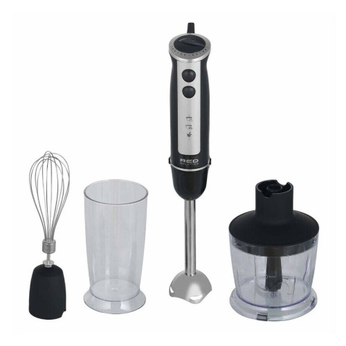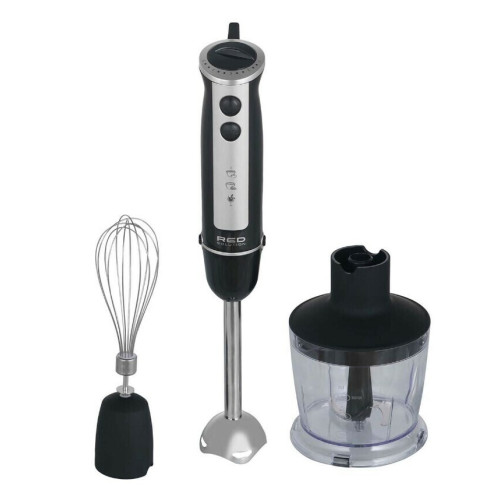 Погружной блендер Red Solution RHB-2948 оснащен мотором 1200 Вт с защитой от перегрева и перегрузки и работает в 14 скоростных режимах. Тип управления — электромеханический. Предусмотрен турборежим. К устройству прилагаются насадка-блендер, венчик, нож с лезвиями в виде буквы S, стакан 600 мл и измельчитель с чашей 500 мл. Рабочие элементы сделаны из нержавеющей стали, корпус выполнен из металла и черного пластика с покрытием soft-touch. Для подсоединения к розетке используется сетевой шнур 1 м.