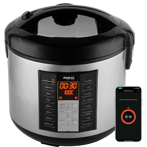 Мультиварка RED solution RMC-M40S — умное устройство с управлением через приложение «SKY. Умный дом и сервисы». С увеличенным объемом чаши в 5 литров можно готовить большие объемы блюд для семьи или большой компании. Прибор оснащен 17 автоматическими программами и рядом дополнительных функций, в том числе фритюром, что делает RED solution RMC-M40S универсальным помощником на кухне. Мультиварка поставляется в комплекте с уникальной книгой рецептов от бренд-шефа RED solution. RED solution RMC-M40S — это умная мультиварка, которая облегчит жизнь вам и вашей семье. Общий объем чаши 5 литров позволяет готовить большие порции за один раз. Антипригарное покрытие DAIKIN® предотвращает прилипание пищи, что облегчит процесс очищения чаши после приготовления. Мультиварка RED solution RMC-M40S позволяет управлять ею не только непосредственно, но и через приложение «Sky. Умный дом и сервисы», которое поддерживается на операционных системах Android и iOS. Приложение содержит более 5000 рецептов на каждый день, точное время готовки и калорийность, рассчитанные шеф-поварами. Запустить приготовление понравившегося блюда можно напрямую из рецепта одним нажатием. Мультиварка RED solution RMC-M40S имеет ряд дополнительных режимов, которые делают ее еще более универсальной: * Приготовление детского питания. В мультиварке можно готовить блюда для самых маленьких с сохранением полезных веществ. * Приготовление сыра и творога. * Расстойка теста. Это значительно упрощает процесс готовки хлеба и другой выпечки. * Приготовление фондю. Это делает мультиварку отличным помощником на вечеринках и праздниках. * Приготовление во фритюре. Это позволяет готовить различные блюда, такие как картофель фри, куриные крылья и т. д. * Приготовление халвы. Мультиварка имеет множество функций для вашего удобства: * установка таймера до 24 часов; * автоподогрев; * предварительное отключение автоподогрева; * отложенный старт; * разогрев блюд. Вы можете настроить мультиварку и забыть о ней, пока она готовит вкуснейшие блюда для вас и вашей семьи. Каждая мультиварка RED solution RMC-M40S поставляется в комплекте с книгой рецептов от нашего бренд-шефа. В ней содержится множество блюд на каждый день и для особых случаев. Вы сможете раскрыть все возможности устройства и готовить вкусные и интересные блюда для всей семьи. Переходите на RED и почувствуйте инновации на своей кухне!