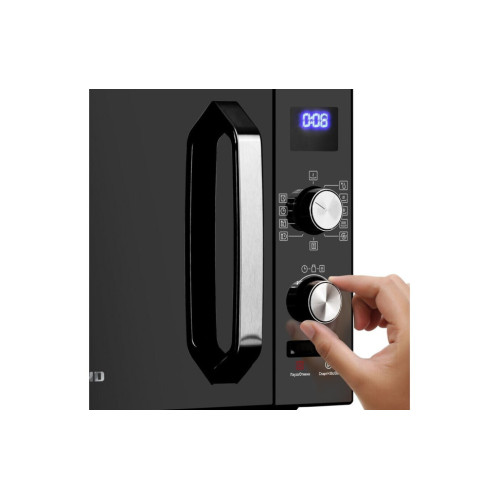 Микроволновая печь Redmond RM-2304D вмещает 23 л и дополняется эффективным поворотным поддоном из закаленного стекла с диаметром 27 см. Такая конструкция гарантирует быстрый и равномерный прогрев блюд. Для управления мощностью и программами используются кнопки и поворотные рычаги. Прибор Redmond RM-2304D обладает таймером и 8-ю программами, включая режимы авторазморозки и авторазогрева. На корпусе имеется небольшой дисплей с часами и отсчетом таймера, а дверца легко открывается с кнопки. Имеется надежная блокировка от детей.
