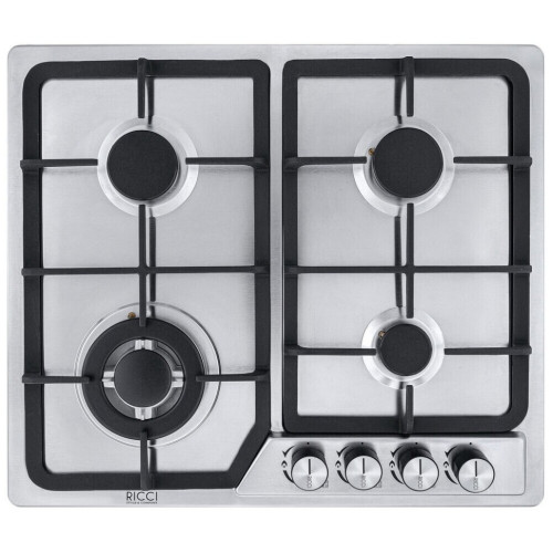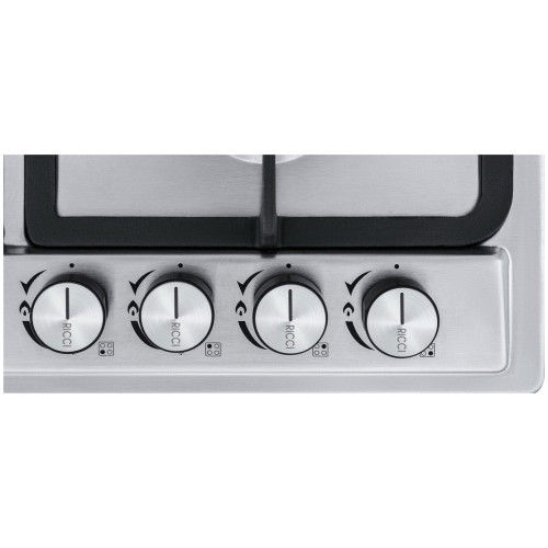 Встраиваемая газовая варочная панель Ricci HBS4501D – подходящее решение для кухни в классическом стиле. У четырех конфорок – различный диаметр и мощность, найдётся место и для миниатюрных турки или ковшика, и для больших кастрюль и сковород.Электроподижг встроен в рукоятки переключателей. Функция газ - контроль обезопасит вас, если пламя случайно погасло.