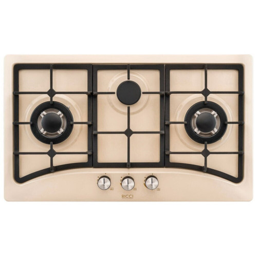 Встраиваемая газовая варочная панель Ricci HBS 3701R выполнена в ретро-стиле и имеет приятный бежевый оттенок. Рабочая поверхность выполнена из эмали, а решетки из чугуна, что обеспечит долгий срок жизни даже при не самым подобающем уходе.