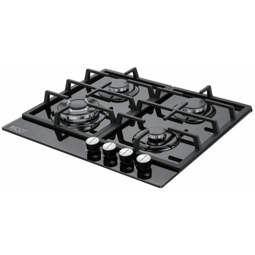 Газовая поверхность независимая Поверхность из закаленного стекла Переключатели поворотные Количество конфорок: 4 Габариты (ВхШхГ) 11х59х51 см Автоматический электроподжиг Газ-контроль Чугунные решетки