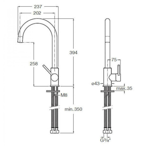 Roca Etna смеситель однорычажный для кухни, хром. * установка на одно отверстие. * высокий поворотный излив. * гибкая подводка 3/8
