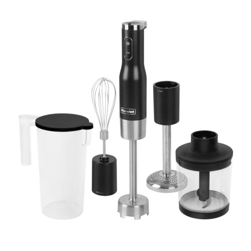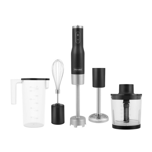 Блендерный набор RDE-1302 с максимальной мощностью 1200 Вт позволит вам готовить с удовольствием и добиваться впечатляющих кулинарных результатов. Благодаря DC-мотору прибор работает так тихо, что им можно пользоваться даже в утренние и вечерние часы. Рабочие лезвия с титановым покрытием и погружная часть блендера изготовлены из надежной нержавеющей стали, что гарантирует безупречную работу устройства на долгие годы. Прибор способен не только измельчать ингредиенты, но и взбивать кремы, муссы или коктейли – для этого в комплекте имеется специальная насадка-венчик. А благодаря дополнительной насадке, изготовленной из нержавеющей стали, блендер может делать нежнейшее пюре. В устройстве также предусмотрен режим TURBO — для самых твердых или плотных продуктов. Скорости переключаются плавно благодаря специальному регулятору. В набор входят рабочая чаша объемом 500 мл и стакан для смешивания объемом 1000 мл с крышкой. Корпус прибора имеет противоскользящее покрытие для комфортного использования. Купите блендерный набор RDE-1302 и получайте удовольствие от процесса кулинарного творчества!