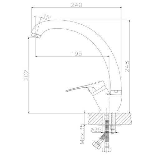* Пластиковый аэратор с функцией легкой очистки * Керамический картридж 35 мм * Гибкая подводка 35 см – 2 шт. * Присоединительная группа для горизонтального крепления * Металлическая рукоятка