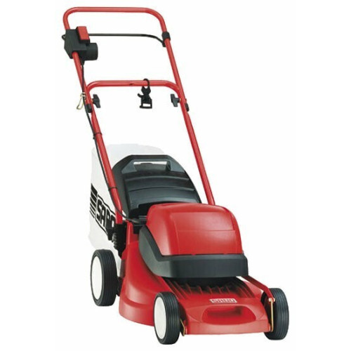 колесная газонокосилка электрический двигатель от сетевого кабеля ширина / высота скашивания: 40 см / 25-75 мм площадь скашивания: 600 м² выброс травы в мягкий травосборник , назад мульчирование уровень шума 94 дБ