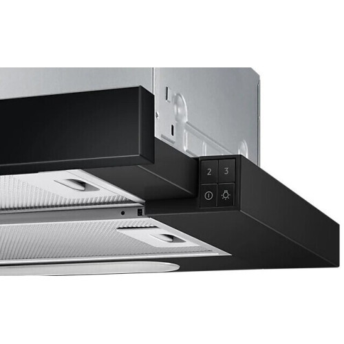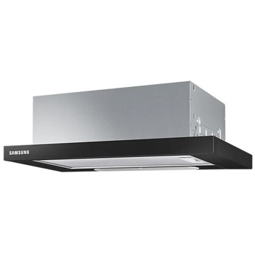 Вытяжка полновстраиваемая Samsung черного цвета выполнена из нержавеющей стали. Она имеет компактные размеры (18x59.8x30.1 см) и выдвижную конструкцию. Устройство работает в режимах отвода и циркуляции воздуха с производительностью до 392 м³/ч за счет мотора мощностью 170 Вт. Модель имеет 3 скорости работы и воздуховод диаметром 12 см. Жировой фильтр препятствует попаданию испарений и мельчайших частиц внутрь конструкции. За счет двух светодиодных ламп мощностью 3 Вт каждая вытяжка Samsung позволяет создать на кухне уютное неяркое освещение.