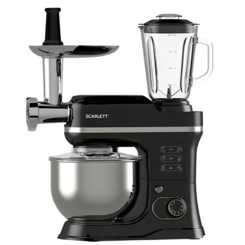 Планетарный миксер SC-SM10M49 мощностью 1600 Вт черного света со стальной декорацией отлично впишется в интерьер любой кухни, а его максимальная комплектация сделает прибор вашим незаменимым помощником в приготовлении любимых блюд! В комплект входит крюк для замешивания густого теста, венчик для взбивания белков, лопатка для смешивания, чаша объемом 5.2л, насадка блендер со стеклянной чашей объемом 1.5л, а также насадка мясорубка с тремя перфорированными дисками, насадками для приготовления кеббе и домашних колбасок, а также с насадками для приготовления домашней пасты. 6 скоростей и импульсный режим работы позволят подобрать оптимальную скорость для приготовления различных блюд. Крышка с отверстием для добавления ингредиентов поможет сохранить рабочую поверхность в чистоте, а нескользящее основание обеспечит устойчивость прибора в работе с продуктами любой консистенции. Металлические шестеренки, которые обеспечивают работу важнейших элементов, защита мотора от перегрева и перегрузки, а также защита от включения с открытой чашей сделают эксплуатацию прибора наиболее эффективной и безопасной.