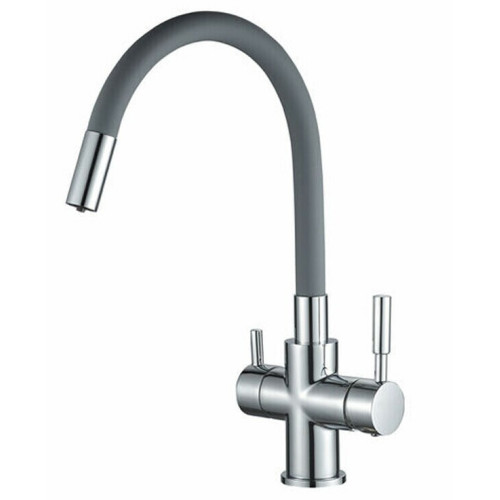 Смеситель для кухни SCHEIN с переключателем на фильтр оснащен тремя подключениями. Один к фильтру, два к водопроводу. Особенность данной модели это гнущийся излив во все стороны. Излив у таких смесителей сконструирован по принципу двух трубок одна в одной. По внутренней трубке идёт отфильтрованная вода, по внешней водопроводная. Это позволяет сэкономить место на кухне и избавляет от необходимости устанавливать дополнительный кран для фильтра. У смесителя с переключателем на фильтр два рычага - один открывает подачу водопроводной воды, второй - фильтрованной. Люди которые привыкли к бутилированной воде, очень быстро переключаются на смеситель с подключением к фильтру. В отличие от бутилированной воды, фильтр под мойкой выдает воду в почти неограниченном количестве. Фильтрующие элементы нужно периодически менять. Качество воды в кране полностью зависит от системы фильтров под мойкой. Кран изготовлен из латуни. Это износоустойчивый, безопасный и надёжный материал. Смеситель из латуни SCHEIN прослужит долго, и всегда будет выглядеть хорошо.