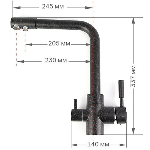 Смеситель для кухни SCHEIN с переключателем на фильтр оснащен тремя подключениями. Один к фильтру, два к водопроводу. Излив у таких смесителей сконструирован по принципу двух трубок одна в одной. По внутренней трубке идёт отфильтрованная вода, по внешней водопроводная. Это позволяет сэкономить место на кухне и избавляет от необходимости устанавливать дополнительный кран для фильтра. У смесителя с переключателем на фильтр два рычага - один открывает подачу водопроводной воды, второй - фильтрованной. Люди которые привыкли к бутилированной воде, очень быстро переключаются на смеситель с подключением к фильтру. В отличие от бутилированной воды, фильтр под мойкой выдает воду в почти неограниченном количестве. Фильтрующие элементы нужно периодически менять. Качество воды в кране полностью зависит от системы фильтров под мойкой. Кран изготовлен из латуни. Это износоустойчивый, безопасный и надёжный материал. Смеситель из латуни SCHEIN прослужит долго, и всегда будет выглядеть хорошо.