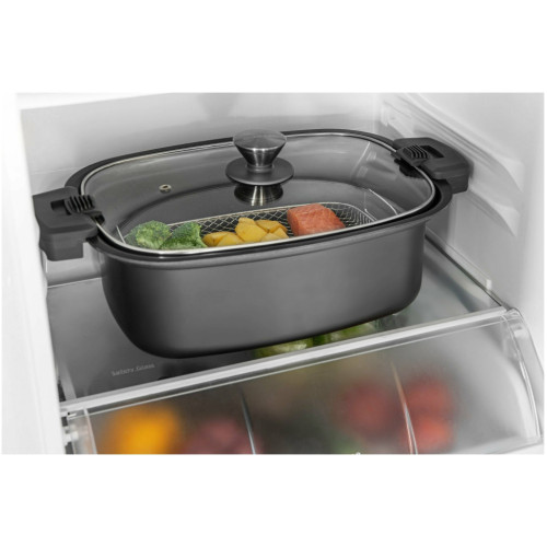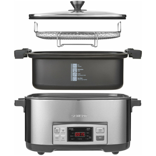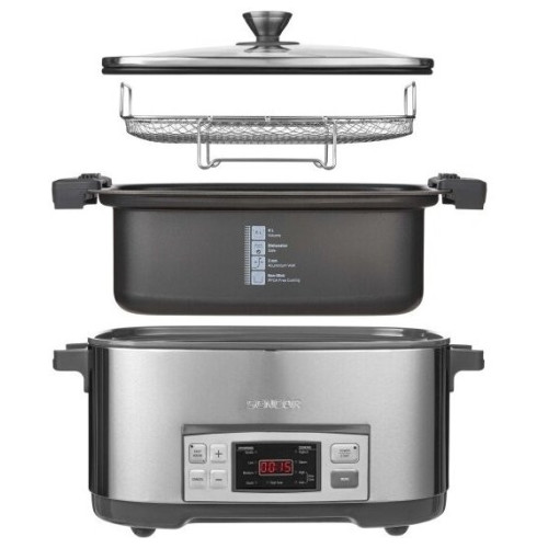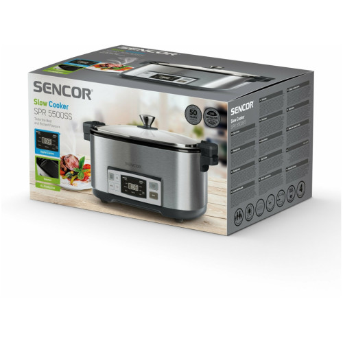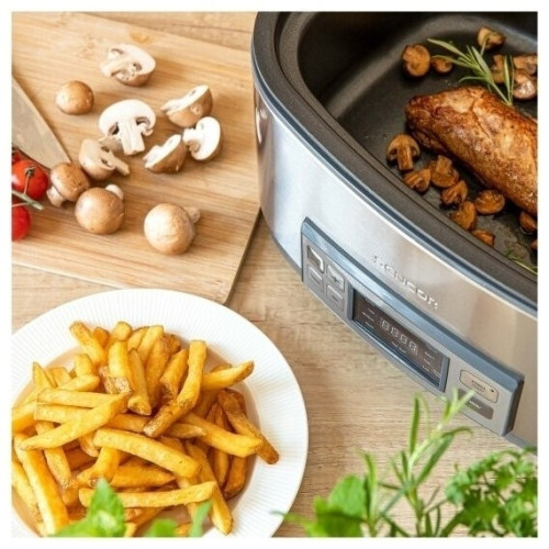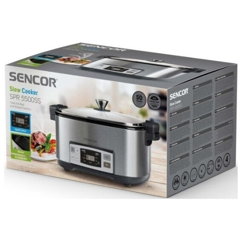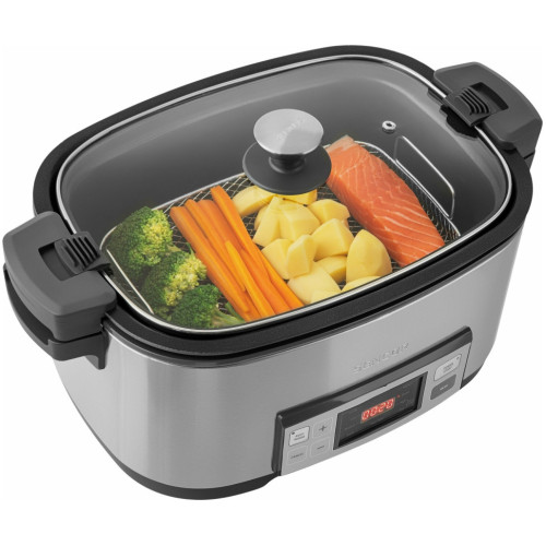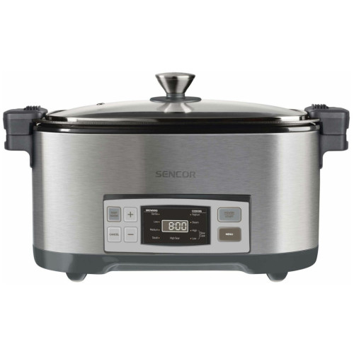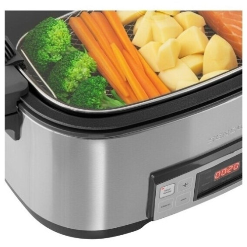 Особенности: Таймер Set Forget (настой и забудь), обеспечивающий максимальный комфорт во время приготовления пищи, позволяет настроить температуру и время готовки. Жидкокристаллический цифровой управляющий дисплей обеспечивает непревзойденное удобство приготовления пищи Система двойной фиксации крышки позволяет максимально сохранить вкус и аромат блюда, а также помогают поддерживать постоянную температуру внутри емкости. Функция Keep Warm (подогрев) после завершения процесса приготовления автоматически поддерживает идеальную температуру вашего блюда Большая сетка для готовки на пару, изготовленная из нержавеющей стали, позволяет готовить на пару рыбу, клецки и овощи Сетка изготовлена из нержавеющей стали марки 304, что гарантирует ее долгий срок службы и устойчивость к коррозии Термоизоляционная ручка предотвращает ожоги и позволяет переносить горячую емкость без защитной рукавицы Крышка из закаленного стекла гарантирует длительный срок службы Идеально герметичная крышка помогает поддерживать постоянную температуру Элегантный дизайн из нержавеющей стали украсит любую кухню Великолепно подходит для приготовления супа, гуляша, варенья, баранины, говядины, овощей, яиц и т. д. Томление это новый способ приготовления, сохраняющий все вкусы и ароматы не требует использования масла экономит время и деньги позволяет готовить блюда на пару, печь, жарить и тушить позволяет готовить превосходные блюда даже из дешевых мясных обрезков не позволяет блюдам пригореть, поскольку готовка не требует высокой температуры уменьшает расход воды благодаря приготовлению блюда в одной емкости Характеристики: Мощность: 1350 Вт Объем чаши: 6 л Тип нагревательного элемента: ТЭН Управление: Сенсорное Мультиповар: Настройка температуры Количество программ: 4 Отложенный старт: Да Управление со смартфона: Нет Внутреннее покрытие чаши: Алюминиевое Материал корпуса: Нержавеющая сталь Вес товара: 5600 г Функционал: Медленноварка 3D нагрев: Нет Цвет: Серый металлик