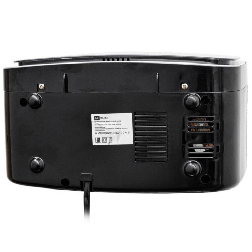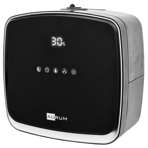 Воздухоувлажнитель Aurum AHR-G3030 оснащен баком 3 л — такого запаса воды хватит примерно на 9 часов. * Модель работает по технологии ультразвукового распыления и эффективна на площади до 40 м². * Конструкция обеспечивает напольную и настольную установку. * Максимальная производительность — 300 мл/час, уровень шума — не более 35 дБ. * Система управления — электронная, интенсивность регулируется с помощью сенсорной панели, предусмотрена индикация выбранной мощности. * Если в резервуаре нет воды, устройство отключится автоматически.