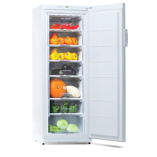 Морозильная камера SNAIGE F27SM-T100011 оптимальна для хранения мясных и рыбных продуктов, а также овощей, ягод и фруктов. Полезный объем устройства равен 227 л. В комплекте есть семь прозрачных пластиковых ящиков. Прочный материал выдерживает значительные нагрузки и не деформируется от воздействия низкой температуры. Система размораживания ручного типа создает комфортные условия эксплуатации. Устройство работает посредством встроенного компрессора, а мощность замораживания составляет 20 кг/сутки. Модель подключается к стандартной электросети и относится к классу энергопотребления А+.
