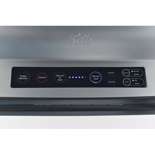 Панель управления с сенсорными кнопками Световая индикация процессов работы Звуковой сигнал окончания режима Крышка с вставкой из матовой нержавеющей стали (не остаются отпечатки пальцев) Режимы для влажных и сухих продуктов Dry/Moist Две скорости откачивания воздуха Normal/Gentle Импульсный режим для нежных продуктов Режим маринования (в контейнерах) Возможность откачивания воздуха из контейнеров Съемный поддон для сбора жидкости Давление сжатия до -0,8 бар Толщина сварного шва 2,5 мм Для пакетов и пленок шириной до 30 см Отсек для хранения рулона и шланга Встроенный резак для плёнки Возможность горизонтального хранения Защита от перегрева Нескользящие ножки