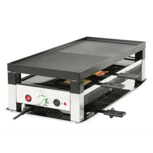 Раклетница позволяет не только приготовить вкуснейшее швейцарское блюдо из сыра — raclette, но и порадовать семью и друзей горячими бутербродами, блинчиками, омлетами и запеканками, а также интересными блюдами с мясом, рыбой, окороком и ветчиной. Для приготовления раклет сыр плавится при помощи электрических нагревателей в специальные ёмкости, а затем ещё горячим соскребается и добавляется к другим ингредиентам. Антипригарное покрытие позволяет готовить без жира, поэтому ваше меню может быть дополнено не только вкусными и необычными, но и здоровыми рецептами.