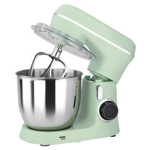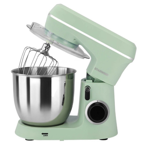 Стационарный миксер Starwind SPM6161 незаменимый помощник на вашей кухне. Это устройство имеет планетарный механизм, который позволит перемешивать и взбивать продукты более тщательно. Это происходит благодаря тому, что во время работы прибора вращается не только насадка, но и сам привод. Высокая мощность этой модели, а также наличие шестискоростного и импульсного режима позволит очень быстро замесить тесто или взбить крем. Основные характеристики: Тип: миксер Тип миксера: планетарный Мощность: 1300 Вт Напряжение: 220-240В/50-60Гц Максимальная загрузка: 1.5 кг Количество скоростей: 8 Объем чаши: 4.5 л Количество насадок: 3 шт Планетарное вращение насадок: да Импульсный режим: да Прорезиненные ножки: да Материал чаши: нержавеющая сталь Материал корпуса: пластик Цвет: мятный Комплектация: Миксер Чаша (4,5л) Щиток пластиковый Лопатка для перемешивания Крюк для замешивания теста Венчик для взбивания Гарантийный талон Инструкция по эксплуатации