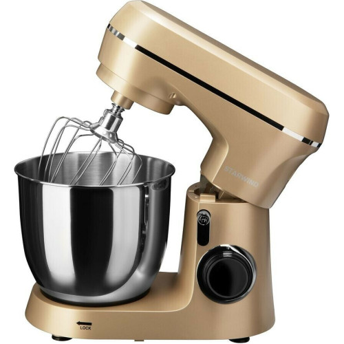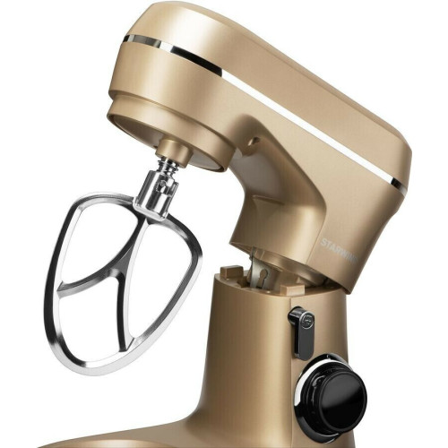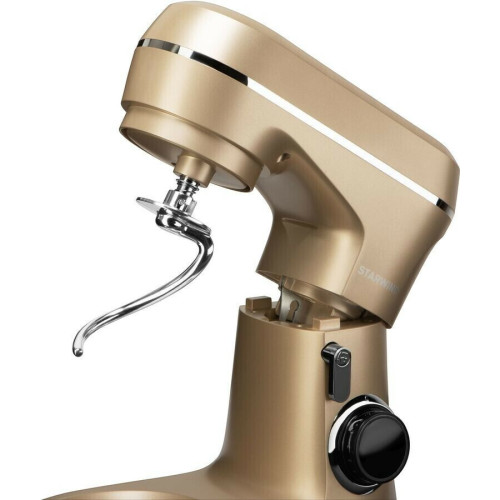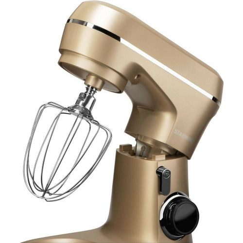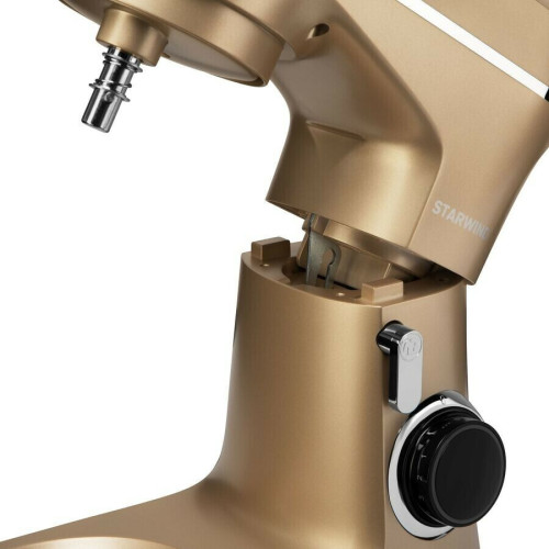 Планетарный миксер Starwind SPM6163 в золотистом цвете функционирует на 8-ми скоростях. Наличие импульсного режима в данной модели позволяет пользователю контролировать темп вращения венчиков и постепенно увеличивать обороты мотора. Двигатель функционирует с минимальным уровнем шума. Мощность миксера составляет 1300 Ватт, а максимально возможная загрузка – 1,5 кг. В конструкции предусмотрена чаша из пластика, имеющая емкость около 4,5 литра. Корпус из высококачественного пластика устойчив к повреждениям и случайным ударам. Ножки с резиновыми накладками гарантируют устойчивость во время работы прибора.