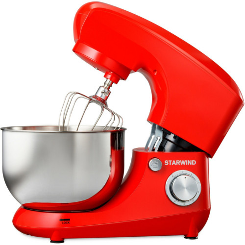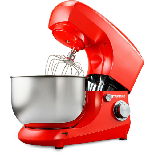 Планетарный миксер STARWIND SPM5186 входит в серию популярных приборов для приготовления пищи. Эффектный дизайн, выполненный в ярком оранжевом цвете, сделает эту модель изюминкой вашей кухни. Стационарная конструкция устройства позволит сэкономить огромное количество времени, поскольку может работать без вашей помощи. Планетарный миксер позволяет более тщательно смешивать ингредиенты. Это стало возможным за счет одновременного вращения насадки и платформы, на которой она закреплена. В процессе работы привод совершает круговые движения, насадка равномерно мешает массу не только в центре чаши, но и у стенок. Высокая мощность двигателя и шестискоростной режим работы позволяет вымешивать даже самое густое тесто, для чего используется специальная насадка-крючок. Для смешивания ингредиентов средней консистенции можно использовать специальную лопатку. Венчик необходим для приготовления нежнейших кремов, воздушных сливок и других изысканных десертов. Для того чтобы избежать разбрызгивания, предусмотрена специальная крышка, которая закрепляется сверху чаши. Все насадки легко снимаются и их можно очищать в посудомоечной машине. В основании корпуса находятся прорезиненные ножки-присоски. Они обеспечивают устойчивость миксера и предотвращают вибрацию во время работы.