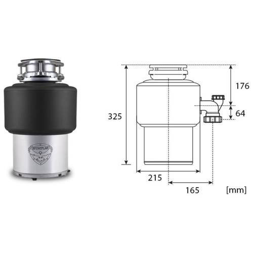 Измельчитель имеет долговечный индукционный двигатель с уменьшенным энергопотреблением и измельчительную камеру из нержавеющей стали с шумоизоляцией. Предусмотрены 2 ступени измельчения. Устройство оснащено системой защиты от перегрузки.