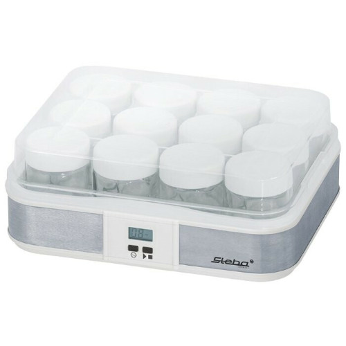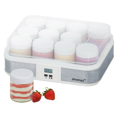 Йогуртница Steba JM 2 обладает мощностью 21 Вт. С этим прибором Вы сможете за один раз приготовить достаточно много йогурта - общий объем контейнеров составляет 2,4 литра, то есть 12 баночек по 200 грамм. Порционные емкости очень удобны и оснащены крышечками. Устройство обладает электронным управлением и имеет ЖК-дисплей. Функция таймера позволит вам выставить время приготовления в зависимости от продукта.