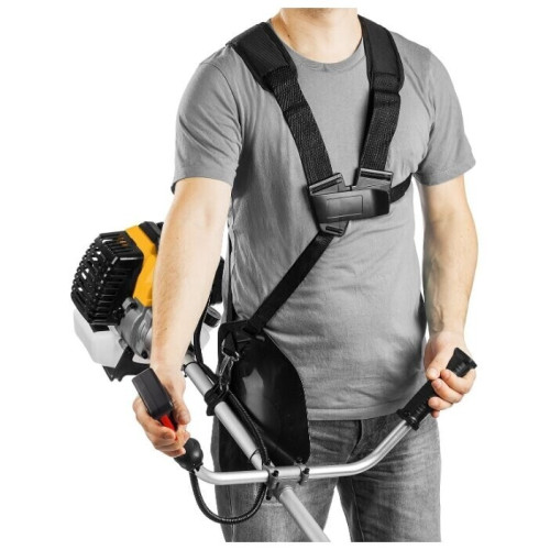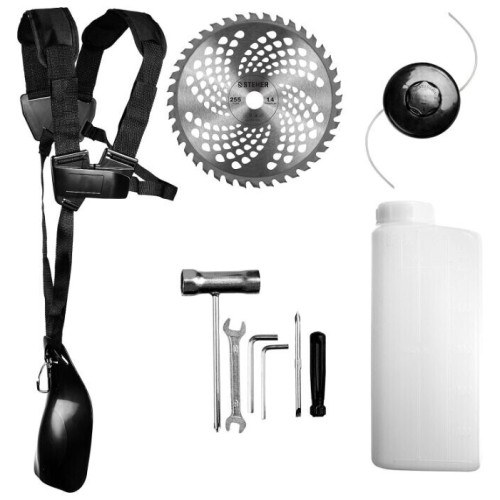 тип триммера: переносной мощность ДВС 3.3 л.с. двухтактный двигатель емкость топливного бака 1.2 л ширина скашивания 47 см режущий элемент триммера: леска и нож, леска 2.40 мм конструкция штанги: прямая форма рукояти: Т-образная (велосипедная) плечевой ремень / складная ручка наличие колес: нет подробная комплектация: коса бензиновая - 1 шт.; велосипедная рукоятка - 1 шт.; кожух защитный - 1 шт.; диск - 1 шт.; катушка с леской - 1 шт.; ключи - 1 комплект; фиксатор вала - 1 шт.; плечевая подвеска - 1 шт.; емкость для смешивания - 1 шт.; руководство по эксплуатации - 1 шт. вес 8.5 кг